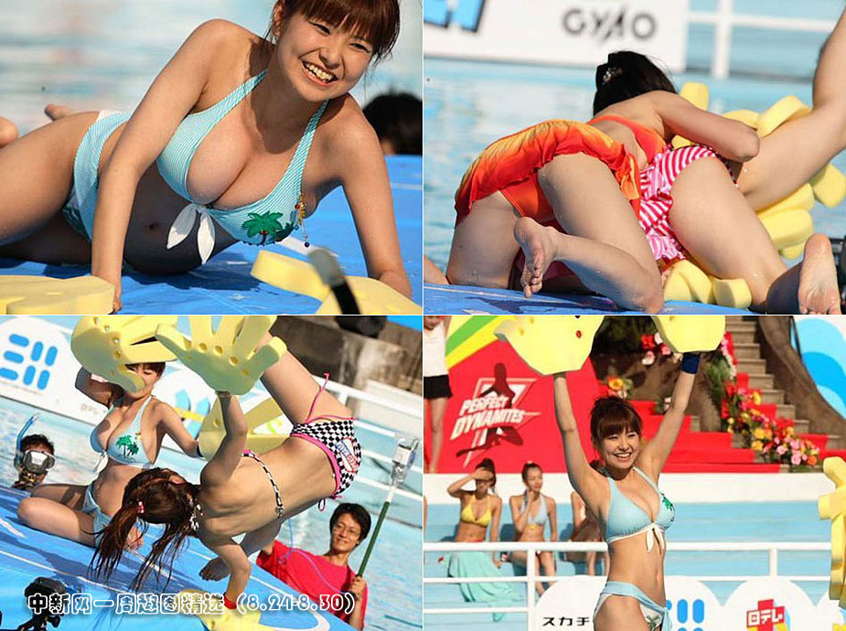 炎炎夏日,日本的比基尼美女們。在水上來一場(chǎng)趣味摔跤大賽,令人體會(huì)到夏日的激情,又不失一分涼爽。圖片來源:金羊網(wǎng)