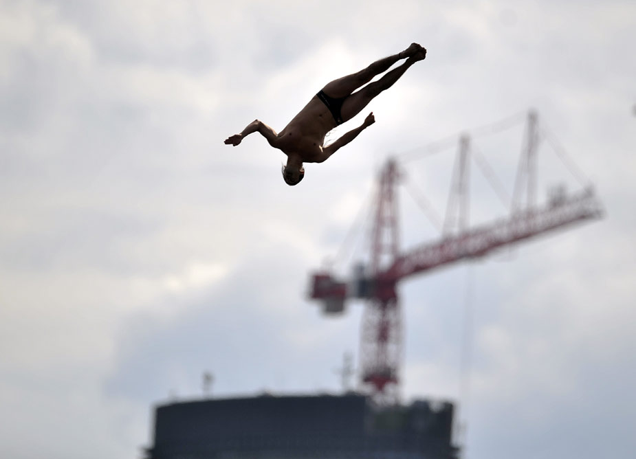 當(dāng)?shù)貢r(shí)間8月29日,世界懸崖跳水系列賽在德國(guó)漢堡舉行。圖片來源:中國(guó)新聞網(wǎng)