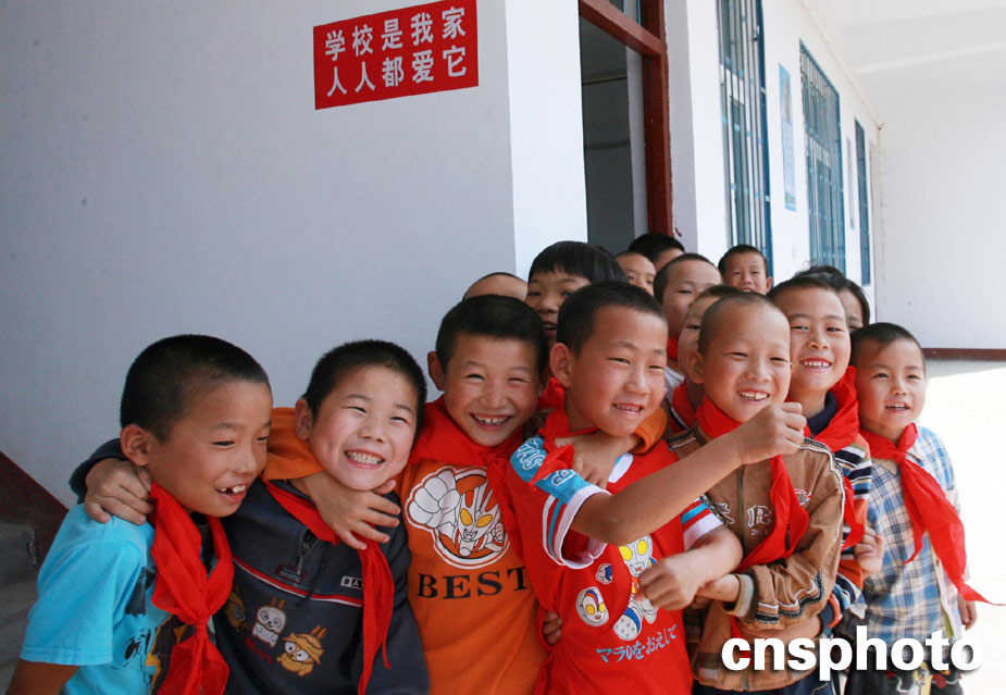 8月31日上午,河南許昌市姬營村,南水北調(diào)移民姬營小學(xué)的小學(xué)生聚集在新落成的教室門口笑逐顏開。當(dāng)日是姬營小學(xué)落成開學(xué)的第一天,該小學(xué)占地5.8畝,擁有740平方米的教學(xué)樓、270平方米的教師辦公室,現(xiàn)有移民新生158人,其中,學(xué)前班47人,一至六年級(jí)111人。中新社發(fā) 王中舉 攝