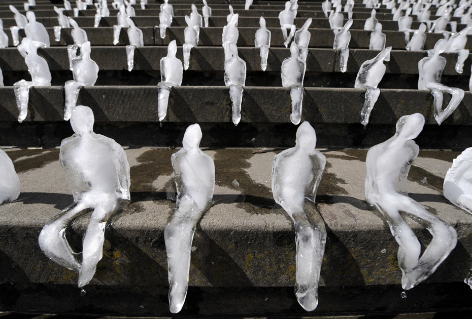 9月2日,德國柏林,世界野生動物基金會(WWF)將1000個小冰人被放置在了御林廣場音樂廳的臺階上,小冰人慢慢融化成水;顒拥慕M織者希望此舉能引起公眾對于全球變暖的關(guān)注。來源:中國新聞網(wǎng)
