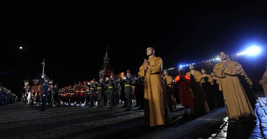 9月4日晚,在俄羅斯莫斯科紅場舉行的俄羅斯國際軍樂節(jié)開幕前夕的總彩排上,中國少林武僧亮相并進(jìn)行了精彩表演。