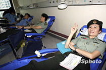 駐港部隊(duì)獻(xiàn)血女兵在前