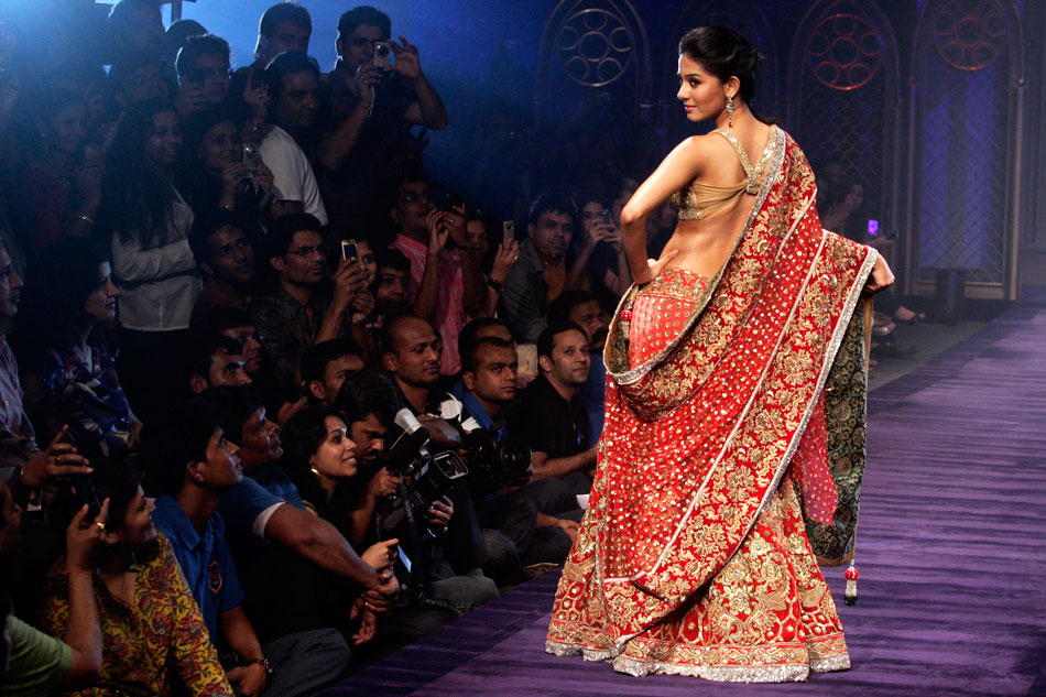 9月13日,主題名為“地球時裝”的時裝周在印度加爾各答開幕,時裝周上模特們展示了設計師馬尼什·馬爾霍特拉的作品。來源:中國新聞網