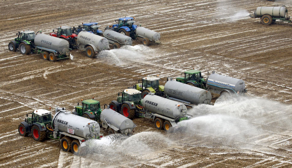 16日,比利時奶農(nóng)向地里傾倒了3百萬升鮮牛奶做“農(nóng)肥”,抗議奶價暴跌。奶農(nóng)們認(rèn)為,提高牛奶生產(chǎn)配額造成歐盟市場上奶制品供大于求,進(jìn)而引發(fā)價格暴跌。來源:中國新聞網(wǎng)