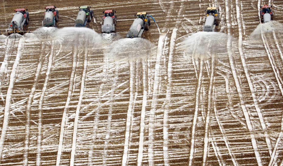 16日,比利時奶農(nóng)向地里傾倒了3百萬升鮮牛奶做“農(nóng)肥”,抗議奶價暴跌。奶農(nóng)們認(rèn)為,提高牛奶生產(chǎn)配額造成歐盟市場上奶制品供大于求,進而引發(fā)價格暴跌。來源:中國新聞網(wǎng)
