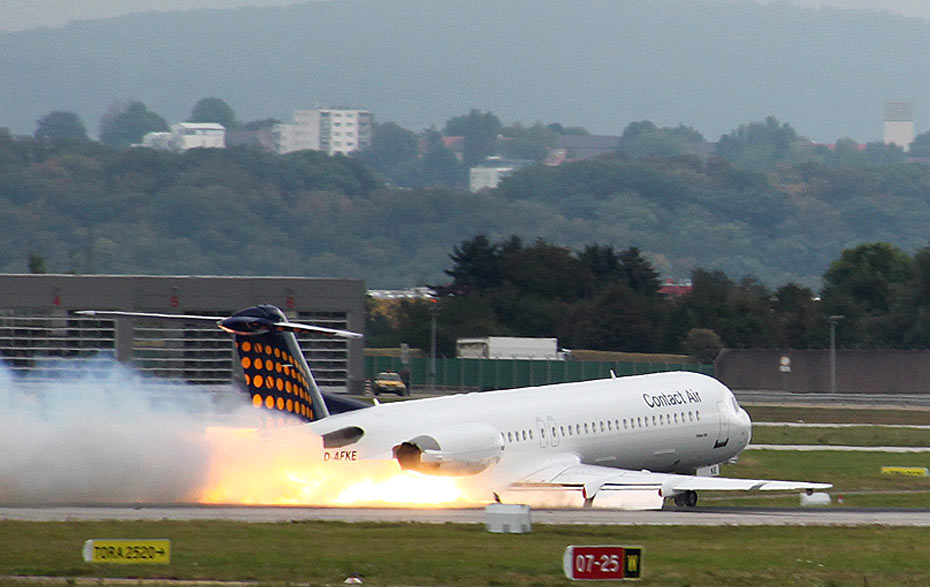 9月14日,在德國(guó)南部的斯圖加特機(jī)場(chǎng),一架?100客機(jī)由于技術(shù)故障原因緊急迫降在停機(jī)坪跑道上,未造成人員傷亡。圖片來(lái)源:中國(guó)新聞網(wǎng)