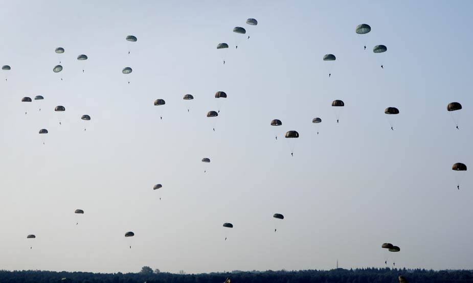9月19日,英國空降兵在荷蘭埃德附近進行傘降表演,紀念二戰(zhàn)期間盟軍最大規(guī)模的空降作戰(zhàn)——“市場花園”行動65周年。圖片來源:中國新聞網