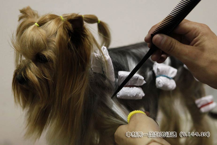當(dāng)?shù)貢r(shí)間9月17日,在墨西哥首都墨西哥城舉行了2009國際小狗競選大賽。眾多參賽的小狗紛紛“梳妝打扮”準(zhǔn)備參加國際小狗競選。圖片來源:中國新聞網(wǎng)