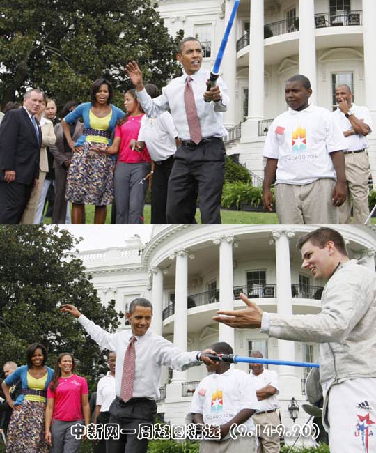 9月16日,美國華盛頓白宮南草坪舉行一場以支持芝加哥申辦2016年夏季奧運會為主題的奧運體育項目展示活動,總統(tǒng)奧巴馬及第一夫人米歇爾·奧巴馬出席活動。圖片來源:中國新聞網(wǎng)