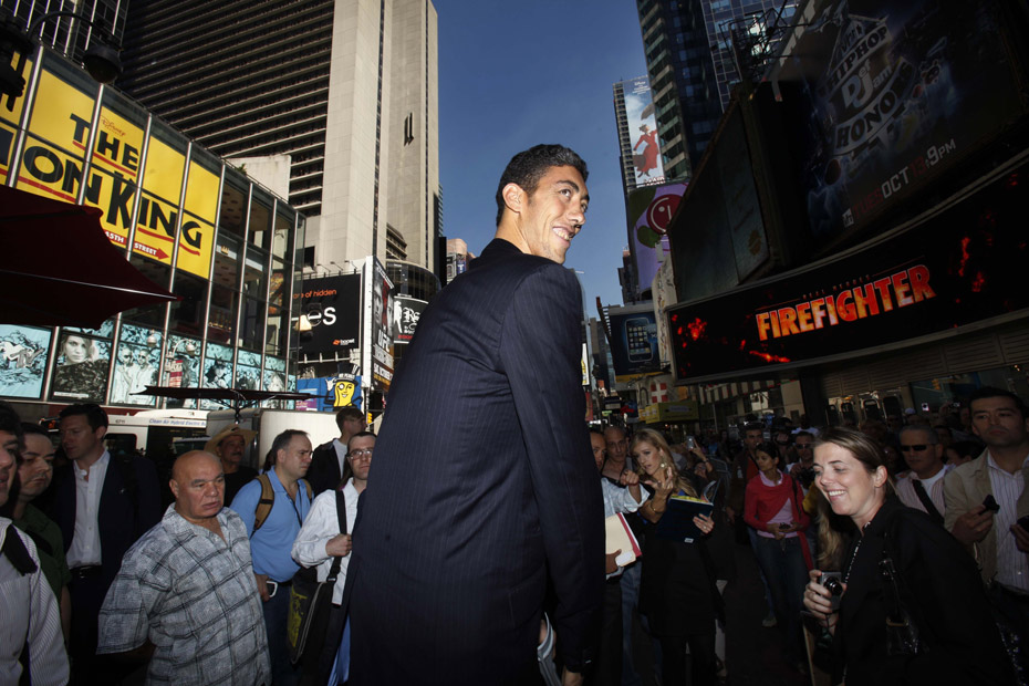 9月21日,身高2.465米的土耳其人柯森在美國(guó)紐約拿到了“世界第一高人”的吉尼斯世界紀(jì)錄證書(shū)。這項(xiàng)紀(jì)錄的上一位保持者是身高2.36米中國(guó)人鮑喜順。來(lái)源:中國(guó)新聞網(wǎng)