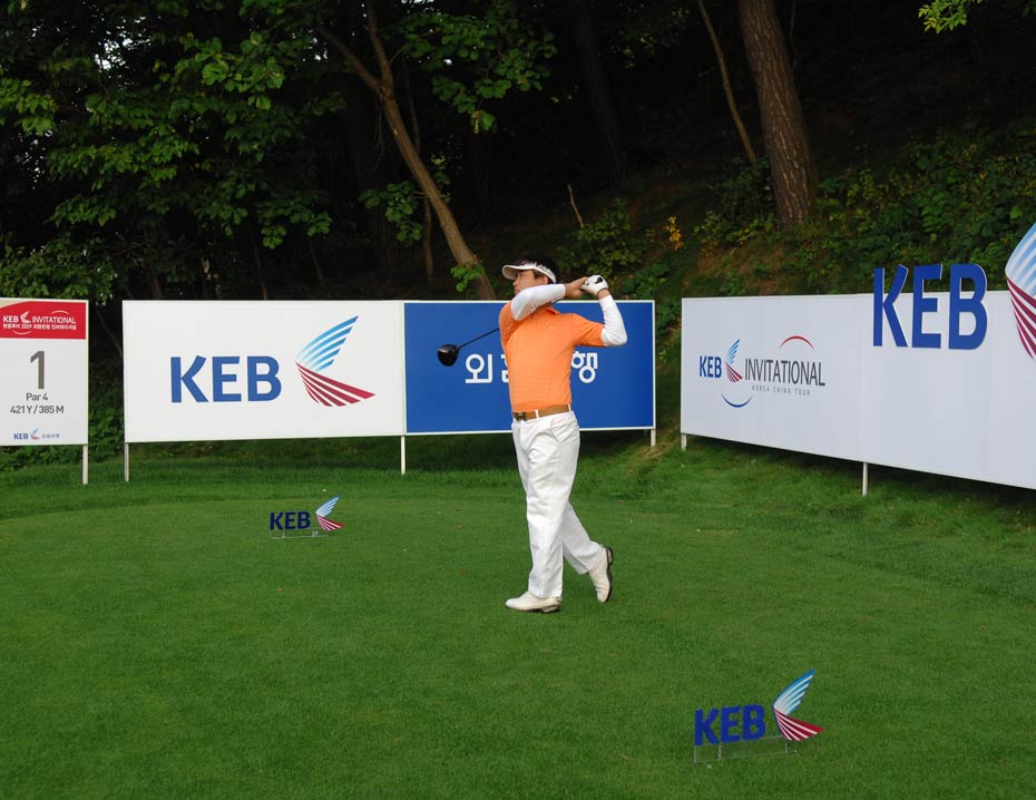 2009“韓國(guó)KEB銀行”中韓職業(yè)高爾夫球巡回賽韓國(guó)站于今天在韓國(guó)OSTAR高爾夫球俱樂(lè)部正式開桿,有47名球員代表中國(guó)參賽。圖為選手們上場(chǎng)第一天,揮桿開打的場(chǎng)面。