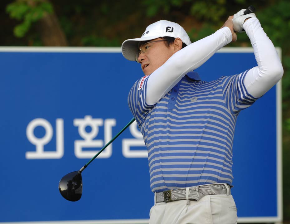 2009“韓國KEB銀行”中韓職業(yè)高爾夫球巡回賽韓國站于今天在韓國OSTAR高爾夫球俱樂部正式開桿,有47名球員代表中國參賽。圖為選手們上場第一天,揮桿開打的場面。