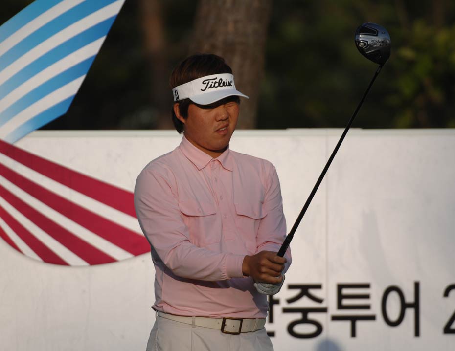 中新網(wǎng)9月24日電 2009“韓國KEB銀行”中韓職業(yè)高爾夫球巡回賽韓國站于今天在韓國OSTAR高爾夫球俱樂部正式開桿,共有133名球員將進行為期4天的角逐,其中有47名球員代表中國參賽,包含7名中國高爾夫球業(yè)余國家隊選手和3名韓籍球員。冠軍將獲得80,000,000韓幣和一座冠軍獎杯。圖為選手們上陣第一天揮桿開打的場面。