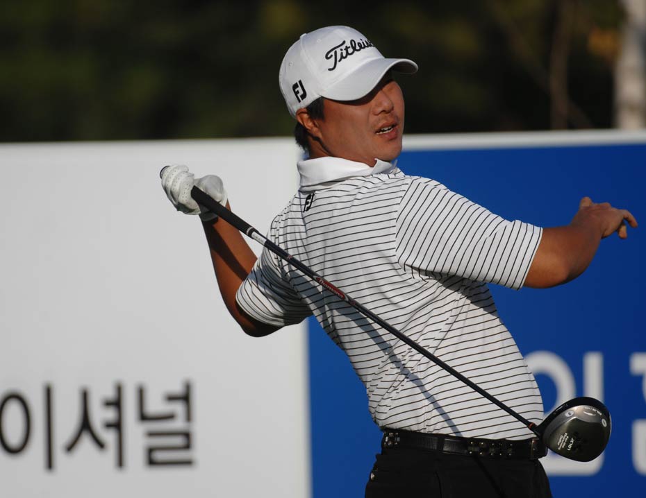 2009“韓國(guó)KEB銀行”中韓職業(yè)高爾夫球巡回賽韓國(guó)站于今天在韓國(guó)OSTAR高爾夫球俱樂(lè)部正式開(kāi)桿,有47名球員代表中國(guó)參賽。圖為選手們上場(chǎng)第一天,揮桿開(kāi)打的場(chǎng)面。