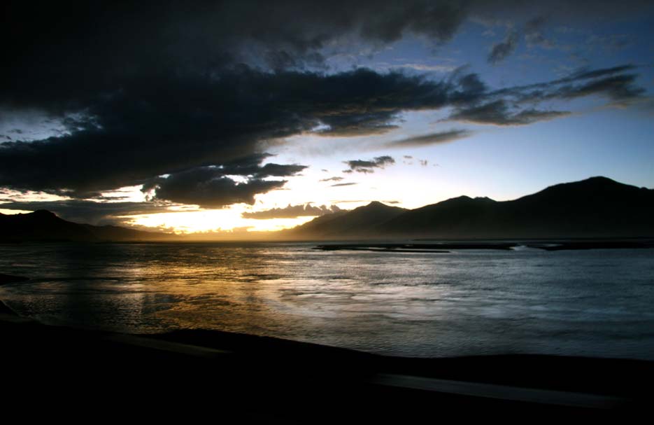 圖為從山南到拉薩的路上見(jiàn)到的夕陽(yáng)下的雅魯藏布江。