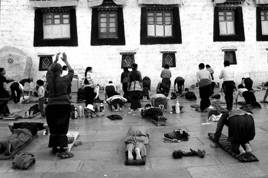 大昭寺廣場(chǎng)上虔誠的朝拜者。