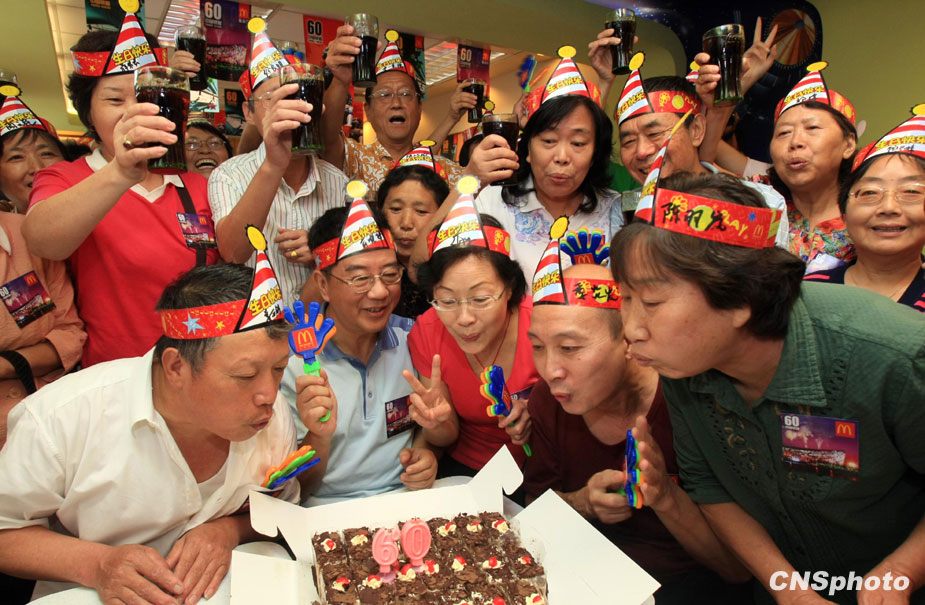 9月23日,上海六十名“共和國同齡人”舉行集體生日派對(duì)共賀新中國生日。 中新社發(fā) 湯彥俊 攝