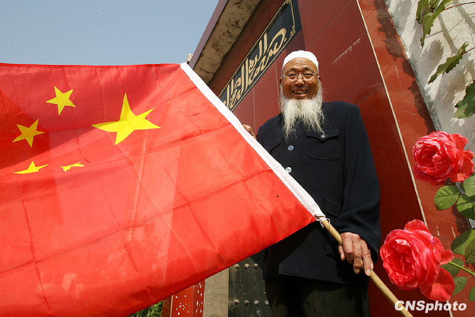 9月下旬,河南省濟(jì)源市廟后居委會(huì)73歲的回族老漢閃登平在自家門口懸掛國旗,喜迎國慶佳節(jié)。 中新社發(fā) 衛(wèi)建波 攝