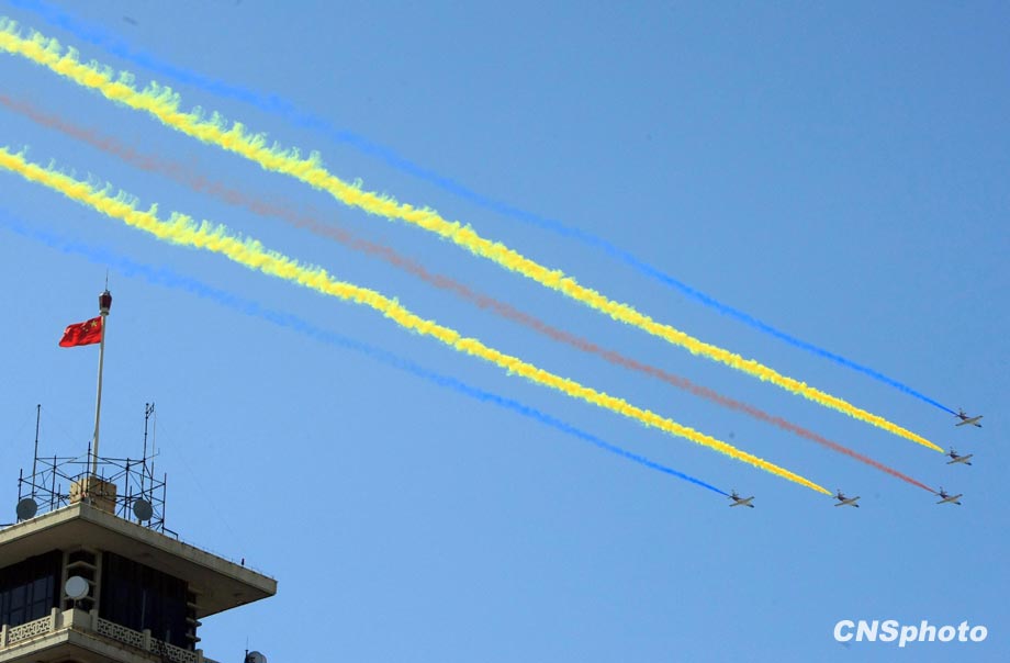 國(guó)慶60周年閱兵10月1日上午在天安門廣場(chǎng)成功舉行。由人民解放軍、武裝警察部隊(duì)和民兵預(yù)備役部隊(duì)8000余名官兵組成的受閱方陣接受檢閱。中新社發(fā) 湯彥俊 攝