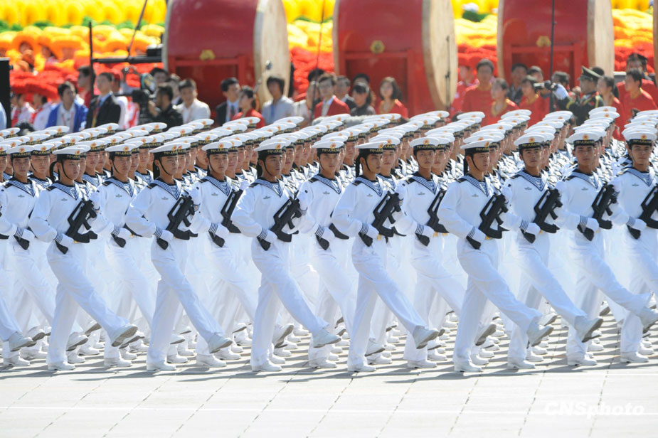 首都各界慶祝中華人民共和國(guó)成立60周年大會(huì)在北京舉行。這是水兵方隊(duì)通過(guò)天安門(mén)廣場(chǎng)。中新社發(fā) 廖攀 攝