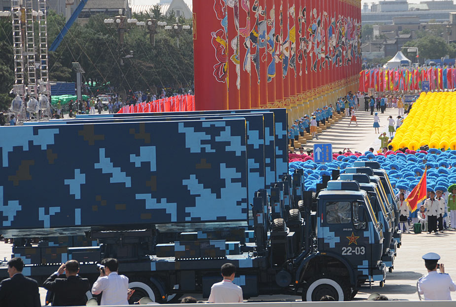 2009年10月1日,首都各界慶祝中華人民共和國(guó)成立60周年大會(huì)在北京天安門(mén)廣場(chǎng)隆重舉行。這是機(jī)動(dòng)雷達(dá)方隊(duì)正在通過(guò)天安門(mén)廣場(chǎng)。中新網(wǎng)記者 攝