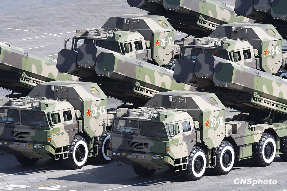 2009年10月1日,中華人民共和國成立60周年慶祝大會在北京舉行。圖為新型地地導彈方隊通過天安門廣場。