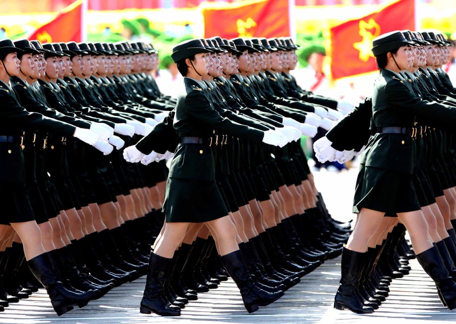 2009年10月1日,北京,首都各界慶祝中華人民共和國成立60周年大會在北京舉行。閱兵式上女兵方陣成為一道靚麗風景。