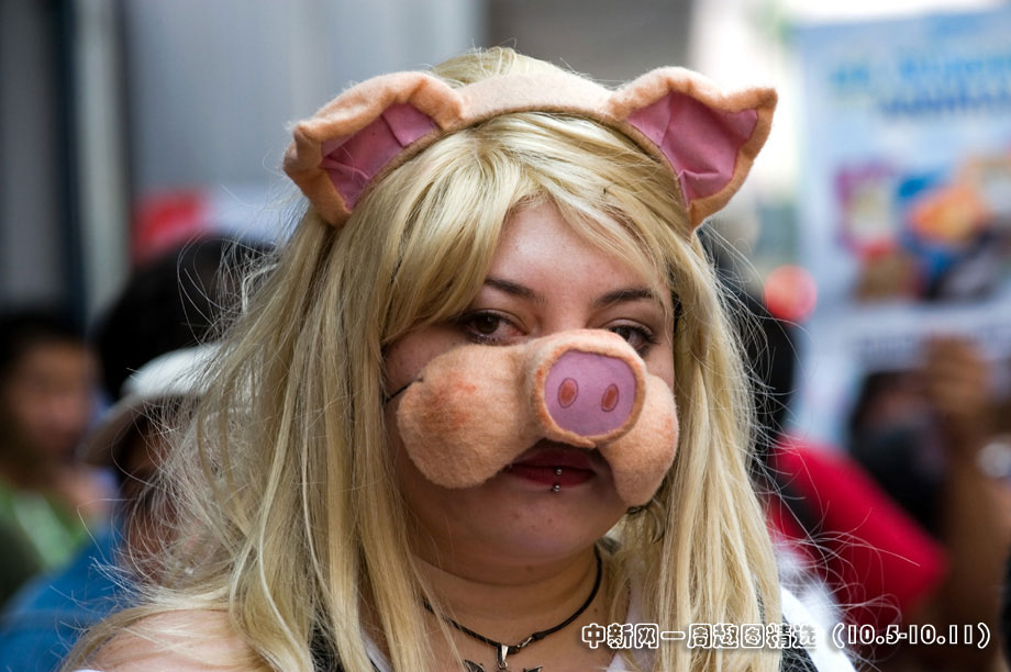 10月4日,在墨西哥首都墨西哥城,參加世界動物日活動的人們頭帶面具,手舉圖片,呼吁人們關(guān)注動物權(quán)益。來源:中國新聞網(wǎng)