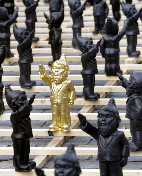 10月14日,德國施特勞賓市街頭擺放了1250個行納粹禮的花園土地神像,“行納粹禮的花園土地神”其實是一款雕塑作品,是由59歲的德國藝術(shù)家奧特馬爾·赫勒爾創(chuàng)作的目的在于提醒人們警惕法西斯思想,反對使用法西斯思想控制大眾。