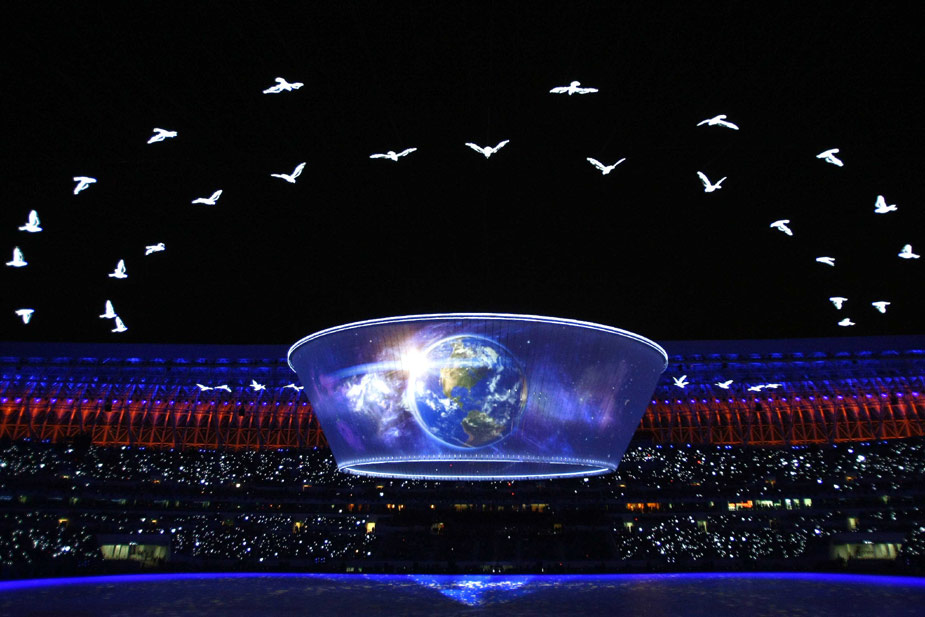 十月十六日晚,中華人民共和國第十一屆運(yùn)動會在山東濟(jì)南奧體中心隆重開幕。圖片來源:中國新聞網(wǎng)