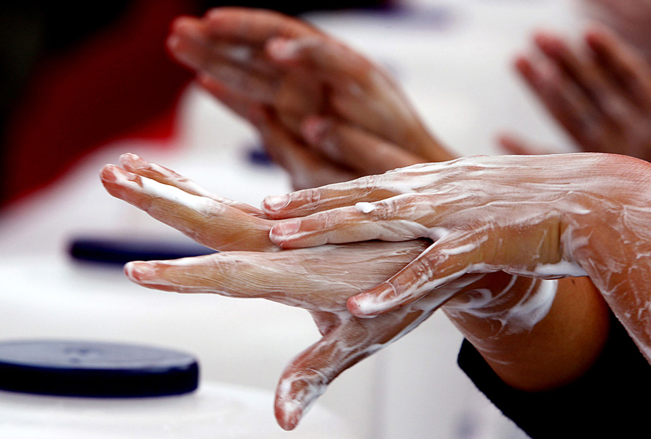 周一(10月12日),秘魯利馬,小學生們正在為即將到來的世界洗手日舉行活動。圖片來源:中國新聞網(wǎng)