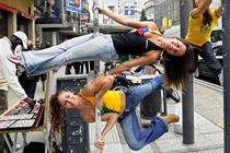 10月19日,阿根廷布宜諾斯艾利斯市街頭,鋼管舞小姐在街頭表演,路邊的路燈、電線(xiàn)桿變身為鋼管舞道具。圖片來(lái)源:中國(guó)新聞網(wǎng)