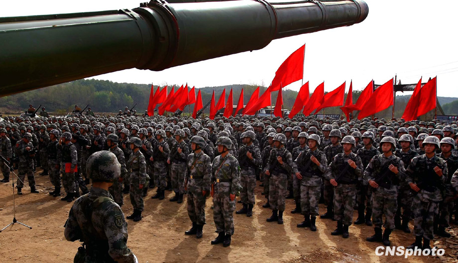 解放軍濟(jì)南軍區(qū)“前鋒-2009A”軍事演習(xí),將于10月21日在某合同戰(zhàn)術(shù)訓(xùn)練基地舉行,參加演習(xí)部隊(duì)10月20日組織戰(zhàn)前動(dòng)員。這次演習(xí)主要是由兵力兵器數(shù)量規(guī)模向信息火力效能聚優(yōu)轉(zhuǎn)變、指揮的重心由主攻方向上的重點(diǎn)突破向作戰(zhàn)關(guān)節(jié)要害的體系毀癱轉(zhuǎn)變、火力的運(yùn)用由概略粗放決策向科學(xué)精細(xì)籌劃轉(zhuǎn)變、協(xié)同的重點(diǎn)由地面步坦行動(dòng)向陸空火力協(xié)調(diào)轉(zhuǎn)變、行動(dòng)的控制由時(shí)間位置推進(jìn)量向效果態(tài)勢(shì)達(dá)成度轉(zhuǎn)變、作戰(zhàn)的目的由殲敵奪地向控要制權(quán)轉(zhuǎn)變。 中新社發(fā) 宋吉河 攝