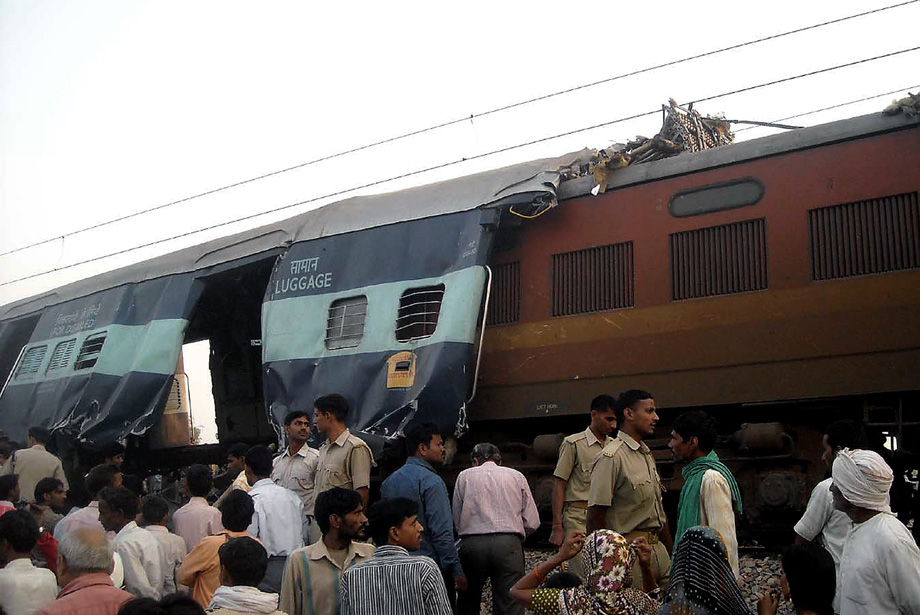 印度北方邦21日凌晨發(fā)生兩列火車相撞事故, 一輛來自西南部果阿的快運列車在馬圖拉附近與一列來自西部拉賈斯坦邦梅瓦爾的快運列車相撞,造成15人死亡。來源:中國新聞網