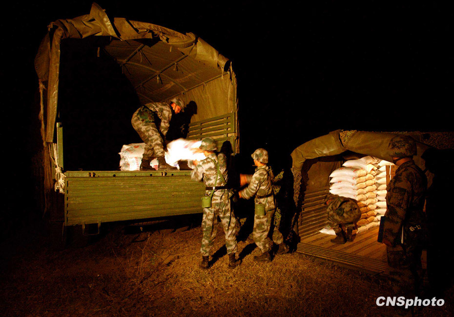 當(dāng)晚國防大學(xué)防務(wù)學(xué)院、空軍指揮學(xué)院的外軍學(xué)員,以及英國、以色列、土耳其、巴基斯坦等國軍事觀察員親臨現(xiàn)場觀摩了后勤保障戰(zhàn)斗準(zhǔn)備、自行榴彈炮占領(lǐng)陣地、裝甲車輛“摸黑”開進等戰(zhàn)斗要素。圖為后勤部隊軍糧夜間運送。中新社發(fā) 宋吉河 攝