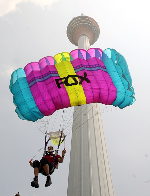 10月23日,馬來西亞吉隆坡電訊塔舉辦2009馬來西亞吉隆坡塔國際跳傘節(jié)。23日至25日將有約80名跳傘好手會在高達421米的吉隆坡塔上表演跳傘。
