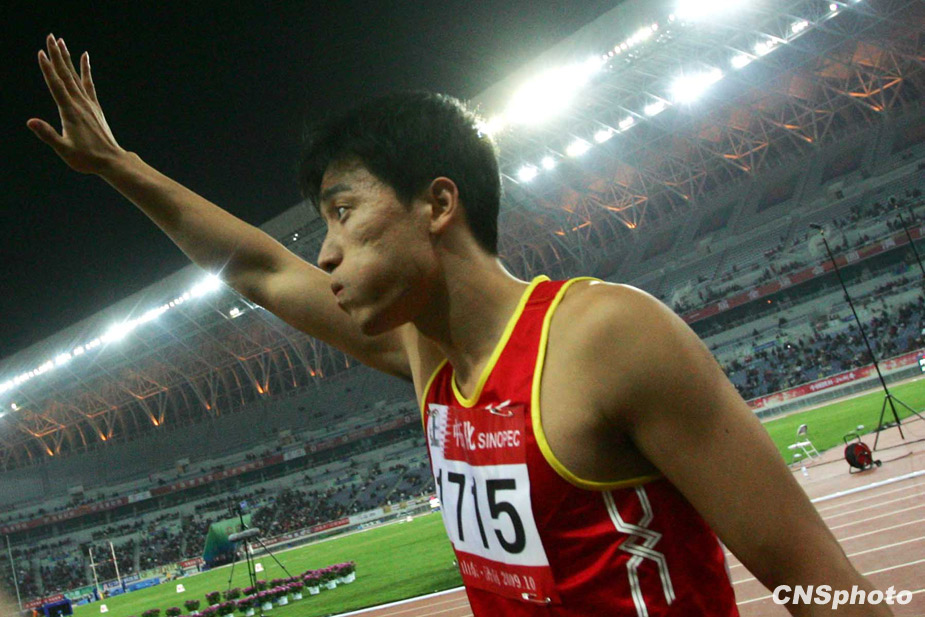 10月24日晚,全運會110米欄預(yù)賽在濟南奧體中心舉行,“飛人”劉翔以13秒75成績輕松晉級決賽。來源:中國新聞網(wǎng)