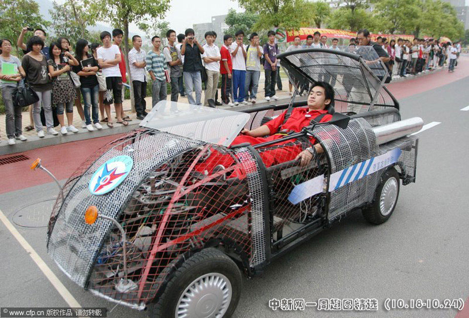 2009年10月20日下午,廈門理工學院舉行的“首屆汽車設計大賽”動態(tài)賽,參賽的11支隊伍顛覆了大家對傳統(tǒng)汽車的想象,“躺著開的概念車”等各種“奇思妙想”一應俱全。莫風 攝>>點擊觀看詳細內容