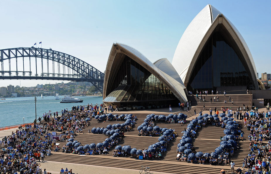 2009年10月24日,當(dāng)日是350全球應(yīng)對氣候變化行動日,世界各地的民眾紛紛用自己的方式來表示對全球氣候變化的關(guān)注和擔(dān)憂。圖為澳大利亞民眾組織活動。