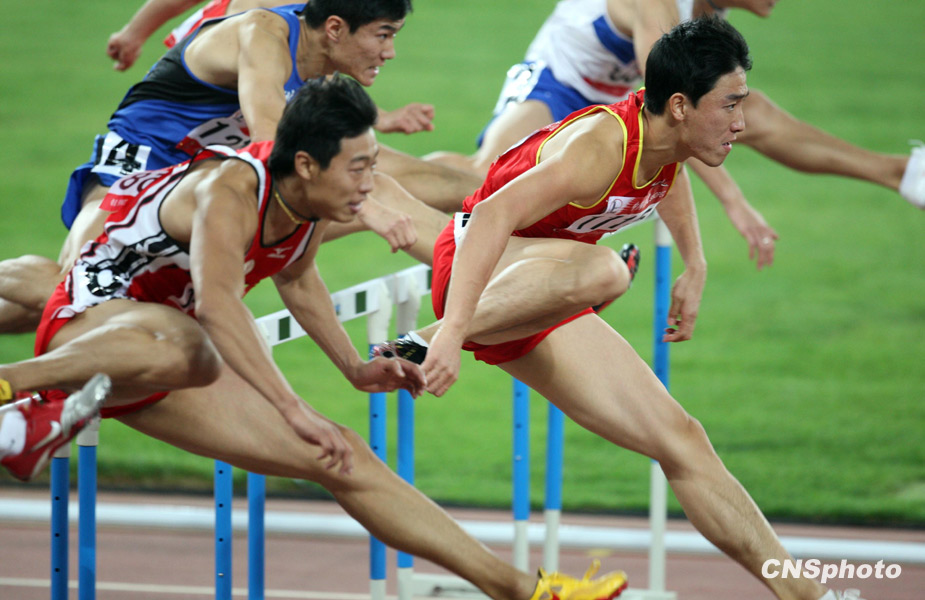 10月25日,在全運會田徑男子110米欄決賽中,上海代表團選手、“中國飛人”劉翔以13秒34的成績勇奪冠軍,同時也成就了其全運會該項目三連冠的偉業(yè)。中新社發(fā) 湯彥俊 攝