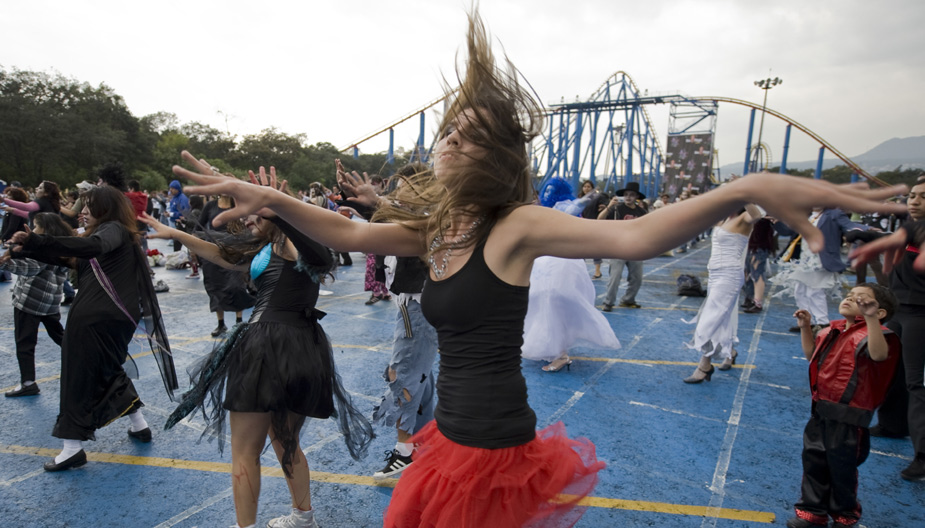 25日,“戰(zhàn)栗全世界”活動(dòng)在全球300多座城市同期舉行,全球一共有大約20000人同時(shí)跳起了邁克·杰克遜著名的戰(zhàn)栗舞。歌迷們借此表達(dá)了對(duì)這位流行音樂之王的哀思。并且刷新了全世界最多人同時(shí)跳舞的世界紀(jì)錄。圖為在墨西哥首都墨西哥城,歌迷跳起“戰(zhàn)栗舞”。