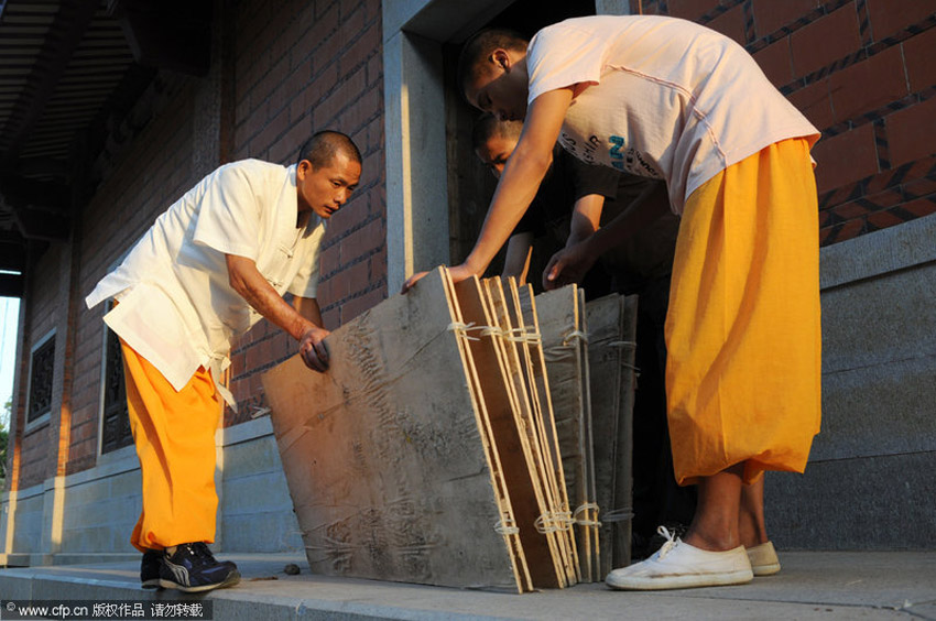 泉州南少林武僧釋理亮借助三合板上演少林絕技“水上漂”,在水面“飛奔”了18米遠。那么,釋理亮的“水上漂”功夫是如何練成的呢?由于訓練刻苦,三合板經(jīng)常被踏出洞來,釋理亮不得不在每次訓練前認真檢查三合板質(zhì)量。林朝陽/CFP