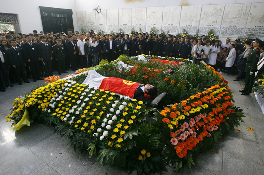 10月28日上午,湖北荊州市在市殯儀館舉行隆重追悼大會(huì),悼念陳及時(shí)、何東旭、方招三位舍己救人大學(xué)生。數(shù)萬(wàn)群眾趕到追悼會(huì)現(xiàn)場(chǎng),手捧菊花為英雄道別。