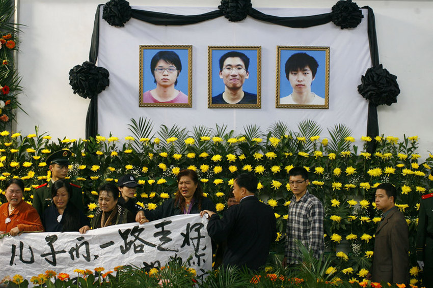 10月28日上午,湖北荊州市在市殯儀館舉行隆重追悼大會,悼念陳及時、何東旭、方招三位舍己救人大學生。數(shù)萬群眾趕到追悼會現(xiàn)場,手捧菊花為英雄道別。