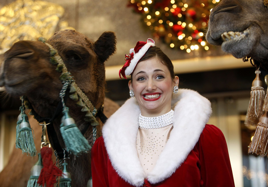 10月29日,火箭女郎舞蹈團的姑娘們在美國紐約廣播城音樂廳與眾多動物明星合影,準備在圣誕秀上亮相。圖片來源:中國新聞網(wǎng)