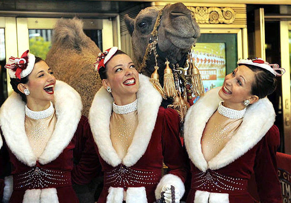 10月29日,火箭女郎舞蹈團的姑娘們在美國紐約廣播城音樂廳與眾多動物明星合影,準備在圣誕秀上亮相。圖片來源:中國新聞網(wǎng)