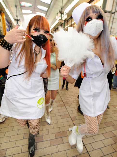 10月31日是西方的“萬(wàn)圣節(jié)”,世界各地的群眾穿著奇異的服飾、打扮鬼魅的造型迎接“鬼節(jié)”的到來(lái)。圖為在日本長(zhǎng)崎,女孩們穿著奇異的服飾迎接鬼節(jié)。