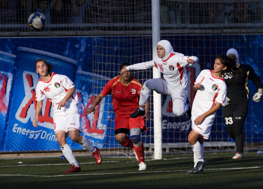 周一(26日),約旦和巴勒斯坦兩國(guó)女子足球隊(duì)進(jìn)行了一場(chǎng)友誼賽。 來(lái)源:中國(guó)新聞網(wǎng)