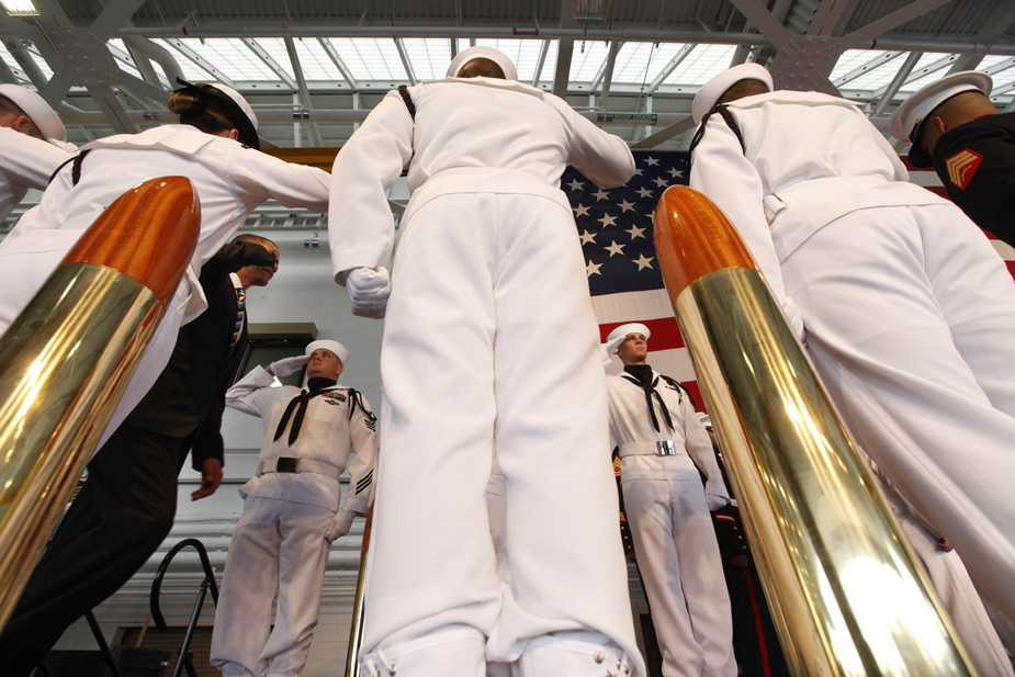 周一(26日),美國總統(tǒng)奧巴馬慰問海軍士兵。 來源:中國新聞網(wǎng)