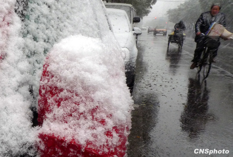 11月1日,深秋的北京大雪紛飛銀裝素裹,很多市民來到室外玩雪,欣賞雪景。北京今年的初雪時(shí)間提前了整整一個(gè)月。